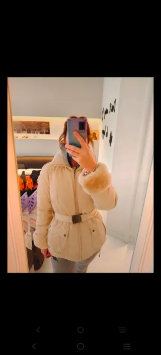 Piumino Add in colore beige, taglia 46 Italia - Cappuccio con pelliccia sintetica. - Cintura in vita con fibbia. - Dettagli in pelliccia sui polsini.