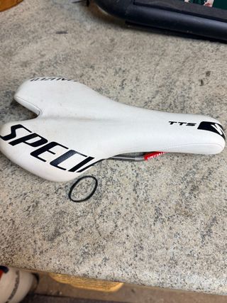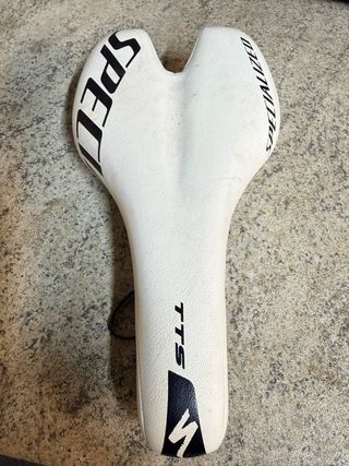 Sella Specialized TTS Team Issue, colore bianco. - Logo Specialized nero sul retro. - rotaie in titanio solido Ti 195g, misure 250x140 Nuova mai montata Nessun segno