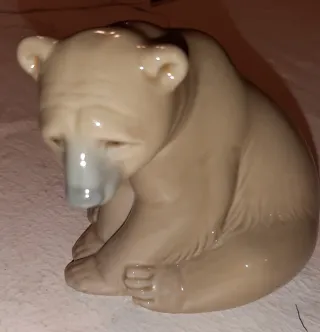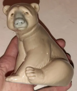 Statua di un orso in porcellana Lladro vintage datata 1972. Un pezzo raro, elegante e raffinato. - Design dettagliato dell'orso seduto. - Finitura liscia e lucida. - Segnalo che la parte posteriore è segnata da una linea- è caduto ma non si è rotto. Frontalmente non si vede nulla- vedere con attenzione le ultime due foto. Il prezzo tiene conto di questo difetto. Non ho più il certificato di garanzia ma il marchio è ben evidente.