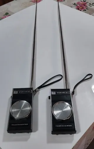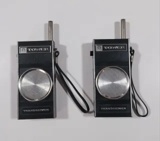Coppia di ricetrasmittenti TOWER 5. anni 70 in ottime condizioni. Made in Jappan NON testati. - Design compatto e portatile. - Antenna estensibile. - Cinturino da polso incluso.