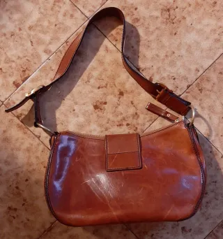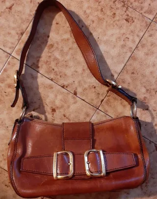 Borsa a spalla The Bridge in pelle. Un accessorio elegante e pratico. - Materiale: vera pelle - Colore: marrone - Dettagli con fibbie dorate - Tracolla regolabile