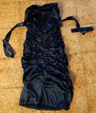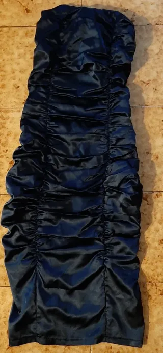 Elegante vestito tubino blu, perfetto per ogni occasione. Il tessuto satinato e le ruches laterali creano una silhouette femminile e alla moda. - Tessuto satinato lucido - Dettagli con ruches lungo i fianchi - Design tubino aderente - Come nuovo, indossato una volta per un'occasione speciale.