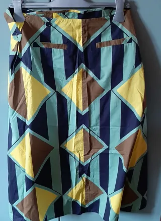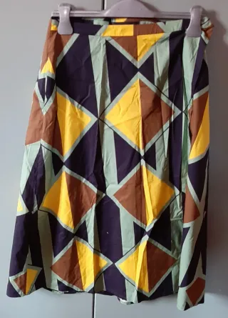 Gonna a portafoglio con una vivace fantasia geometrica. - Motivi geometrici multicolore. - Design a portafoglio. - Due tasche posteriori