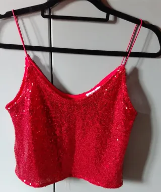 Top corto con paillettes scintillanti. - Spalline sottili. - Scollo a V.