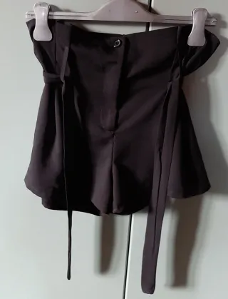 Pantaloncini corti eleganti, perfetti per ogni occasione. - Vita alta con cintura. - Tessuto leggero e fluido. - Chiusura con bottoni e zip.