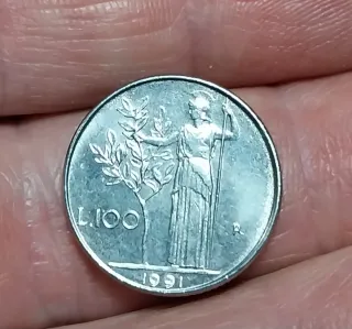 Italia - Moneta da 100 Lire (piccole) del 1991, variante con le gambe del 99 chiuse. Condizioni ottime