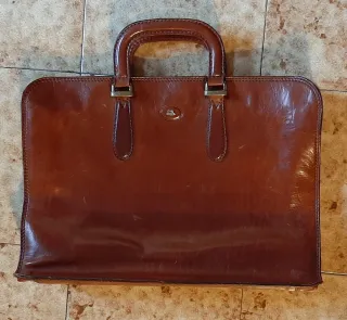 Elegante cartella The Bridge in pelle marrone. - Materiale: Pelle - Colore: Marrone - Logo The Bridge impresso - Qualche segno ma nessuno strappo o scucitura.