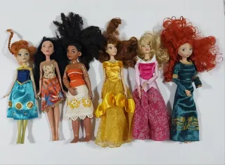 Set di bambole ispirate alle Principesse Disney. Perfette per collezionisti o per giocare. - Include 6 bambole. - Abiti dettagliati e colorati. - Capelli lunghi e fluenti.