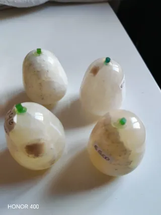 Vendo set di 4 pere decorative in pregiato onice artigianale. Gli oggetti presentano una splendida finitura lucida e venature naturali che vanno dal bianco latte al caramello. -Pezzi inclusi: 4 pere (come da foto). -Dimensioni: altezza circa 6 cm (misurate con metro). -Qualità: Pietra dura naturale lavorata a mano, ogni pezzo è unico. -Stato: Oggetti nuovi, fondo di magazzino per chiusura attività. -Ideali per: Arredo casa, collezionismo pietra dura, o come base per bomboniere eleganti e originali. -prezzo €3,50 singolo set da 4 pezzi €10,00