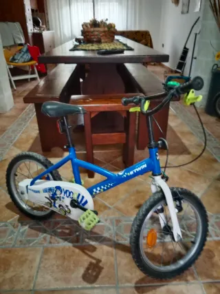 Vendo due biciclette per bambino, ideali per i più piccoli. - Colore blu e bianco. - Pedali gialli. - Manopole verdi.