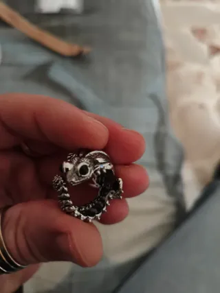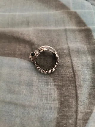 Anello a forma di serpente, un accessorio unico e distintivo. - Design a forma di serpente. - Dettagli in argento. - Pietra nera sull'occhio.