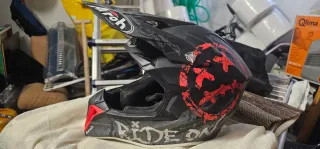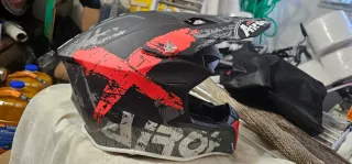 Casco da motocross Airoh Wraap Smile. È un casco entry-level, leggero, con calotta in HRT (High Resistant Thermoplastic). Presenta un look aggressivo con grafiche accattivanti e un sistema di ritenzione a doppio anello (DD ring) per la sicurezza. Gli interni sono anallergici, completamente rimovibili e lavabili. Il frontino è regolabile.