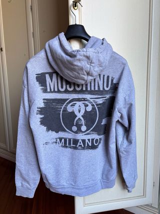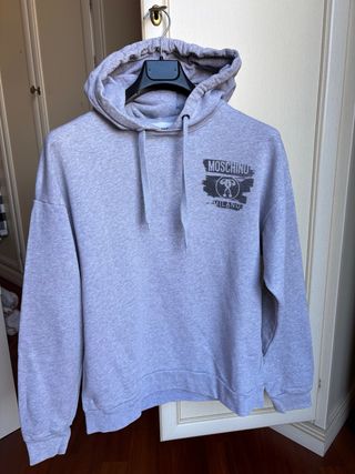 Felpa con cappuccio Moschino in cotone, colore grigio. spalle 63 cm lunghezza 69 cm - Logo Moschino Milano sul davanti.
