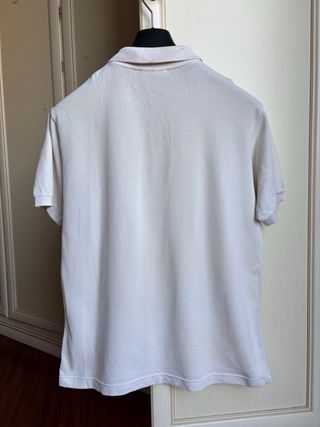 Polo Lacoste in cotone di colore panna. spalle 46 cm lunghezza 69 cm - Logo del coccodrillo ricamato sul petto. - Collo a polo con chiusura a due bottoni. - Maniche corte.