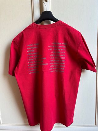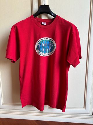 T-shirt Supreme vintage con grafica sul davanti. la stampa davanti e’ screpolata come da foto spalle 52 cm lunghezza 77 cm - Colore rosso vivace. - Design con logo ovale e scritte. - Taglia L