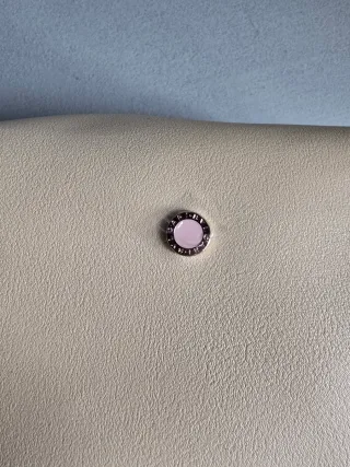 Pochette porta trucchi Bulgari in colore beige. Un accessorio elegante e pratico. Ancora sigillata contiene mini profumo, creme e altri accessori - Materiale similpelle. - Chiusura con zip. - Dettaglio frontale con bottone decorativo.