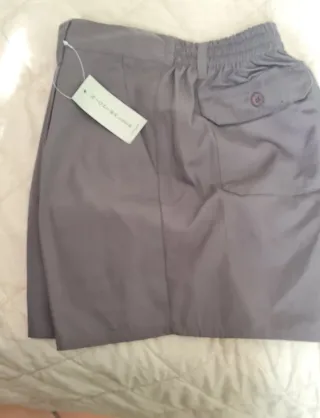 Pantaloncini da uomo del marchio NIGHTWALKER. - Colore grigio. Chiaro - Taglia M (corrisponde a 38-40 / 48-50). - Vita elasticizzata. - Tasca posteriore con bottone.