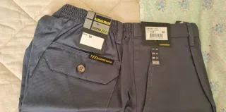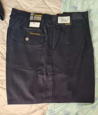 Pantaloni da uomo in tessuto resistente, ideali per il lavoro o il tempo libero. - Vita elasticizzata per un comfort ottimale. - Tasca posteriore con chiusura a bottone. - Logo Crown sul taschino.