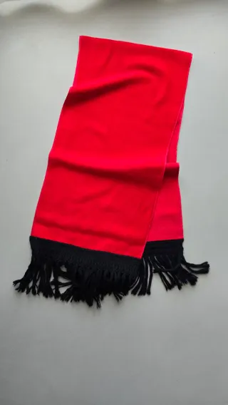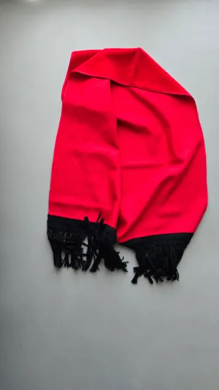 Elegante stola in un vivace colore rosso, rifinita con un bordo di frange nere. dimensioni 153 x 38 cm - Materiale morbido al tatto. - Design bicolore accattivante. - Lunghezza generosa per diverse opzioni di styling.