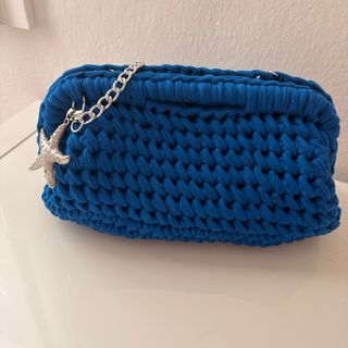 Borsa fatta a mano con un design unico e un tocco marino. Perfetta per aggiungere stile al tuo look. - Realizzata all'uncinetto. - Decorata con un charm a forma di stella marina. - Catena argentata per portarla a spalla o a mano.
