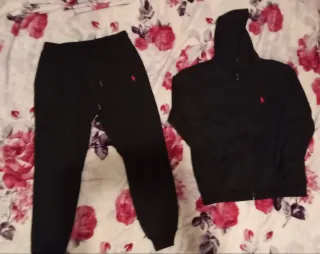 Completo tuta Ralph Lauren composto da felpa con cappuccio e pantaloni. - Felpa con zip e cappuccio. - Pantaloni con coulisse in vita. - Logo a cavallino rosso ricamato su entrambi i capi.