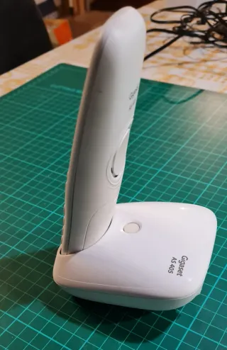 Telefono cordless di colore bianco. - Tastiera numerica completa. - Tasti rapidi per chiamate. - Display informativo.