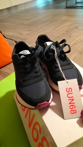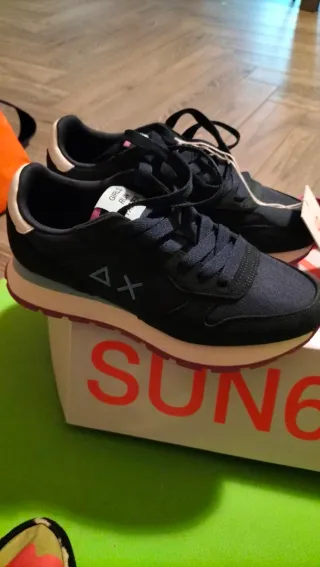 Scarpe SUN68 AX, perfette per chi cerca stile e comodità. Acquistate per errore di misura, sono nuovissime e mai indossate. - Colore nero con dettagli rosa. - Design moderno e accattivante.