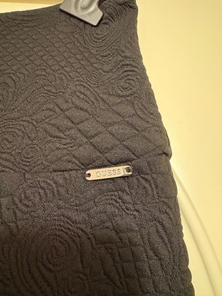 Minigonna Guess nera con un design unico. - Tessuto con motivi in rilievo. - Taglio svasato. - Dettaglio logo sul lato.