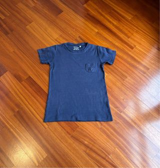 T-shirt blu in cotone, taglia 12 anni. - Girocollo. - Taschino sul petto.