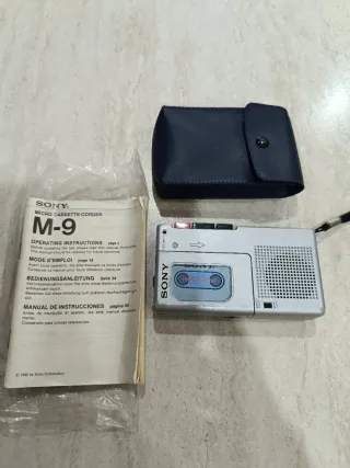 Registratore vocale portatile Sony M-9, un classico degli anni '80. - Modello: M-9 - Tipo: Micro Cassette-Corder - Marchio: Sony - Include custodia in pelle blu e manuale di istruzioni. "👁️ Attenzione può darsi che necessiti di essere revisionato o tenere come collezione 👁️"