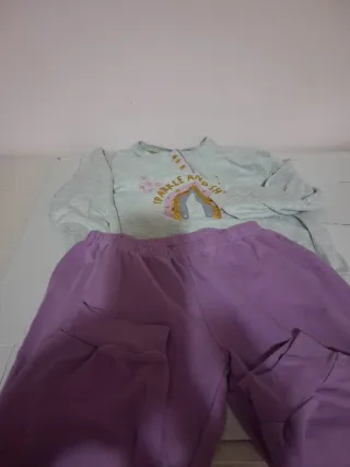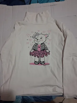 Set coordinato per bambina di 8 anni, composto da pantaloni e lupetto. - Pantaloni neri con coulisse. - Lupetto bianco a collo alto.