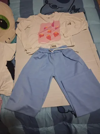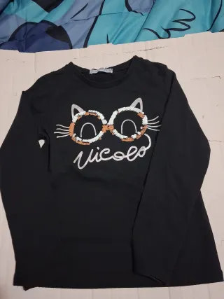 Coordinato nuovo per bambina, taglia 8 anni. - Maglia a maniche lunghe bianca con stampa Stitch. - Pantalone lungo nero.