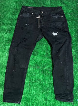 Jeans Zara uomo slim fit elasticizzati. - Vestibilità slim. - Tessuto elasticizzato per un maggiore comfort. - Dettagli strappati per un look moderno. - Taglio alla caviglia.
