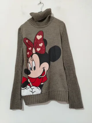 Maglioncino con dolcevita e stampa di Minnie. - Maniche lunghe a coste. - Collo alto a coste. - Stampa di Minnie con fiocco rosso a pois bianchi e cuoricini. - Fondo a coste. Ottime condizioni. No poste italiane. Misure sotto per verifica prima di acquistare. Buona elasticità. Etichetta con tessuto non presente. Lieve scucitura orlo basso visibile nell'ultima foto, indossabile così o facilmente riparabile. Misure lineari : Spalle 38 cm Petto 44 cm Vita 38 cm Fianchi 40 cm Lunghezza 63 cm Lunghezza manica da spalla 62 cm