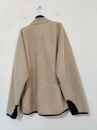 Giacca in pile con zip frontale e dettagli a contrasto. - Materiale pile morbido. - Zip frontale. - Tasche con zip. - Collo alto. Ottime condizioni. No poste italiane. Misure sotto per verifica prima di acquistare. Etichetta con taglia per nazione in foto. L/XL. Poliestere. Misure lineari : Spalle 65 cm Petto 60 cm Vita 57 cm Fianchi 50 cm Lunghezza 70 cm Lunghezza posteriore 75 cm Lunghezza maniche da Spalle 62 cm