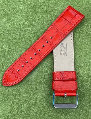 Eleganti cinturini per orologio con finitura lucida e motivo coccodrillo. Attacco ansa 26mm larghezza cinturino 24mm - Materiale: Pelle lucida - Motivo: Coccodrillo - Chiusura: Fibbia in metallo