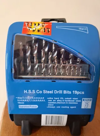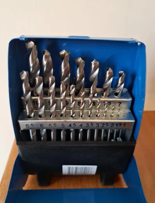 Set di punte per trapano in metallo, ideali per diversi utilizzi. - Punte con misure da 1 mm a 10 mm. - Include misure intermedie come 1.5, 2, 2.5, 3, 3.5, 4, 4.5, 5, 5.5, 6, 6.5, 7, 7.5, 8, 9, 10. - Contenitore blu per una facile