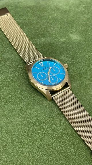 Elegante orologio con quadrante blu e cassa color oro. SPEDITO CON SCATOLA E GARANZIA - Cinturino in maglia metallica color oro. - Design moderno e raffinato.