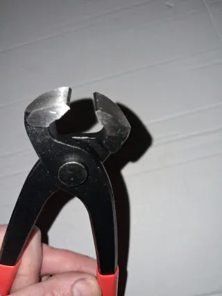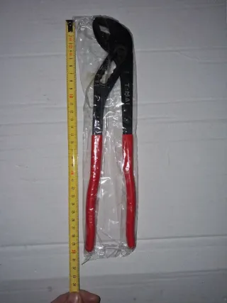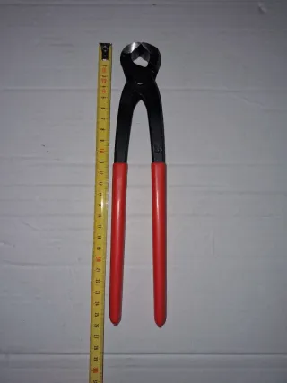 Tenaglia con manici rossi. - Struttura in metallo nero. - Manici rivestiti in gomma rossa.