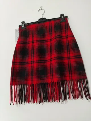 Minigonna corta con fantasia tartan. Realizzata in lana, presenta un design con frange sul fondo. - Fantasia tartan rossa e nera. - Dettaglio frange. - Composizione in lana. Nuova con cartellino. No poste italiane. Misure sotto per verifica prima di acquistare. Etichetta con tessuto in foto. Vita non elastica. Misure lineari : Vita 34 cm Lunghezza 50 cm