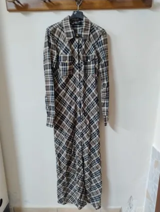 Vendo splendido abito lungo a camicia (chemisier) di Zara in fantasia scozzese/quadri. I colori sono un mix di marrone, nero e panna, perfetti per un look autunnale o invernale. L'abito ha un taglio molto femminile, leggermente sfiancato sul retro per seguire la silhouette. Marca: Zara. Taglia: M (veste regolare). Chiusura: Bottoni automatici a pressione su tutta la lunghezza. Dettagli: Taschini frontali e maniche lunghe con polsino. Misure: Spalle: circa 40 cm. Lunghezza: È un modello maxi, lungo circa 140 cm (misurato dalla spalla al bordo inferiore).#zara #vestito #lungo #chemisier #quadri #scozzese #tagliaM #maxidress #autunno #