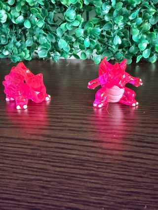 Due figure Pokemon Tomy in plastica trasparente rosa. - Rhyhorn - Rhydon