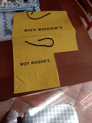 Due buste di carta Roy Roger's. - Colore giallo vivace. - Manici neri. - Ideali per confezionare regali