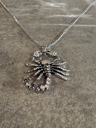 Elegante pendente a forma di scorpione con finitura in argento antico. - Design dettagliato dello scorpione. - Dettagli scintillanti incastonati. Un ciondolo a forma di scorpione simboleggia forza interiore, trasformazione, mistero e protezione, rappresentando l'intensità, la passione, la resilienza e la capacità di superare le avversità attraverso una rinascita simbolica, legandosi all'astrologia dello Scorpione ma anche a significati più universali di coraggio e radicamento spirituale, come difesa contro le negatività o richiamo alla propria autenticità, secondo le diverse interpretazioni culturali e personali.