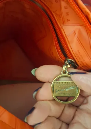 Borsa a spalla The Bridge in un vivace colore arancione. Il design presenta una stampa ripetuta di elementi grafici. - Tracolla regolabile. - Tasche esterne. - Chiusura con zip.