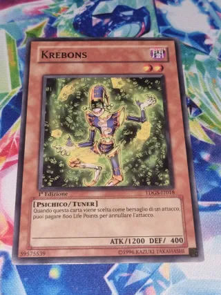 Carta Yu-Gi-Oh! Krebons, 1 edizione italiana. - Tipo: Psichico/Tuner - Attacco: 1200 - Difesa: 400 - Codice carta: TDGS-IT018 - Numero: 59575539