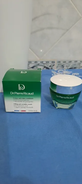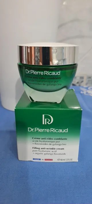 Crema viso Dr. Pierre Ricaud, ideale per combattere le rughe. La confezione contiene 40ml di prodotto. - Formula con acido ialuronico puro. - Arricchita con flavonoidi bio di galanga. - Made in France.