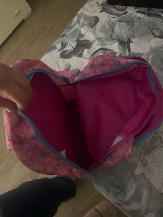 Cartella con fantasia a cuori e fiorellini. - Chiusura con cerniera. - Fodera interna. - Manici per il trasporto.