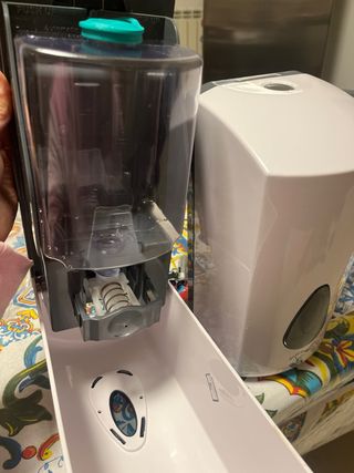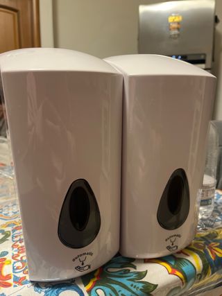 Set di due dispenser per sapone automatici Nyco CD-5018. - Design bianco moderno. - Funzionamento a mani libere. - Batterie e alimentatore NON inclusi (6V).