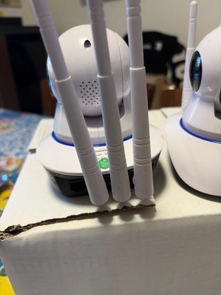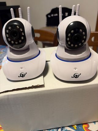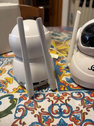 Vendo coppia di telecamere Wi-Fi, ideali per la sorveglianza. - Design moderno e compatto. - Colore bianco. - Antenna per una migliore ricezione del segnale.